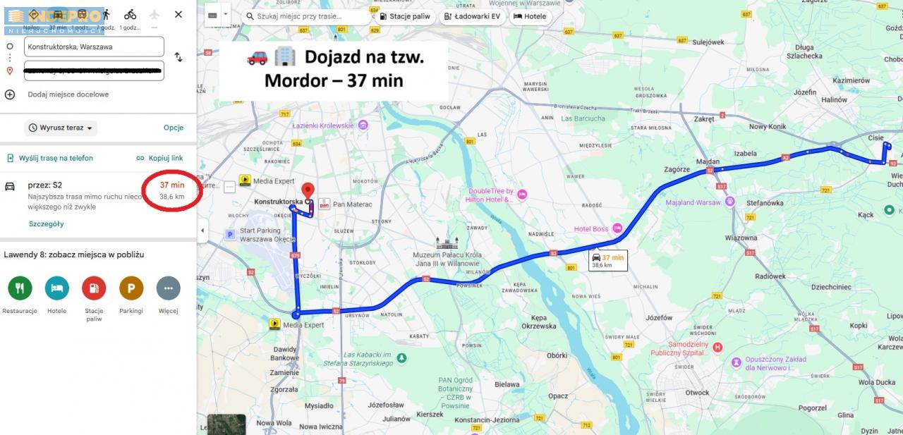 Parkuj i Jedź Sulejówek Miłosna – 13 min autem, stamtąd SKM do Śródmieścia w ok. 27 min