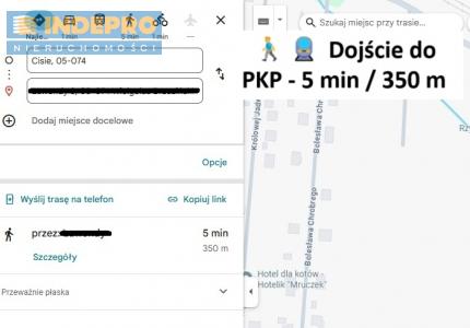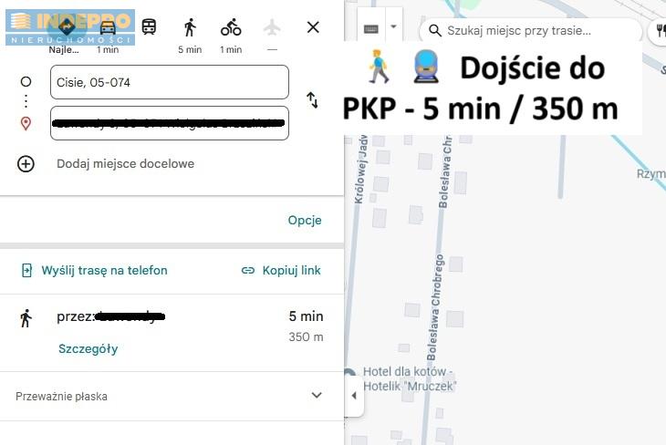 PKP Cisie – 350 m (dojazd do Warszawy Śródmieście ok. 35 min)