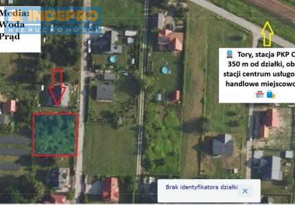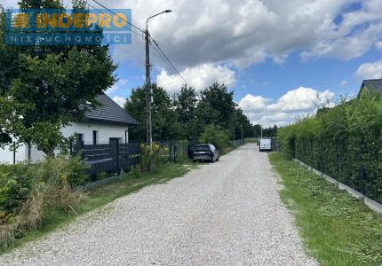 Działka w kształcie zbliżonym do kwadratu (31 × 33 m), położona między domami jednorodzinnymi. Dojazd drogą utwardzoną odchodzącą od asfaltu.