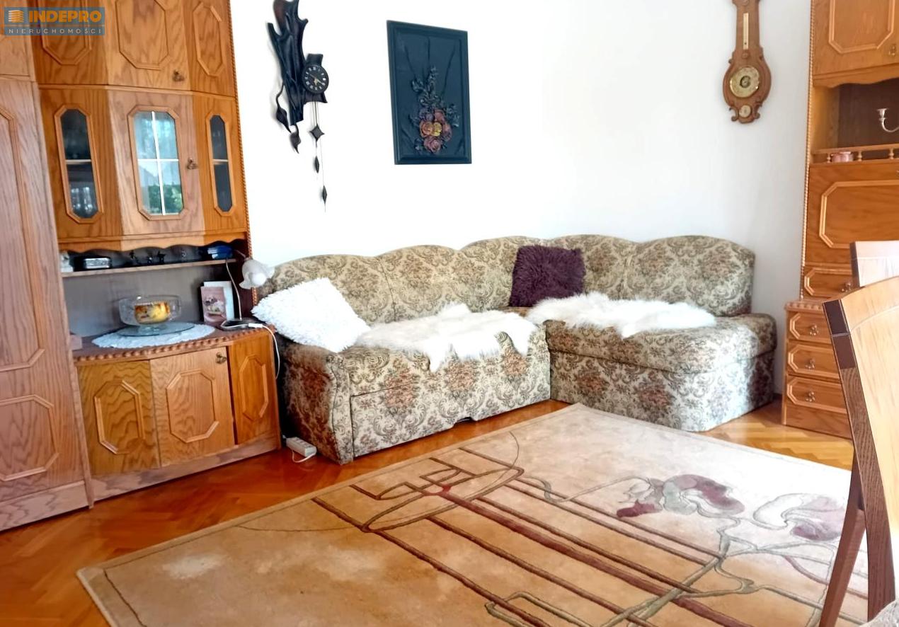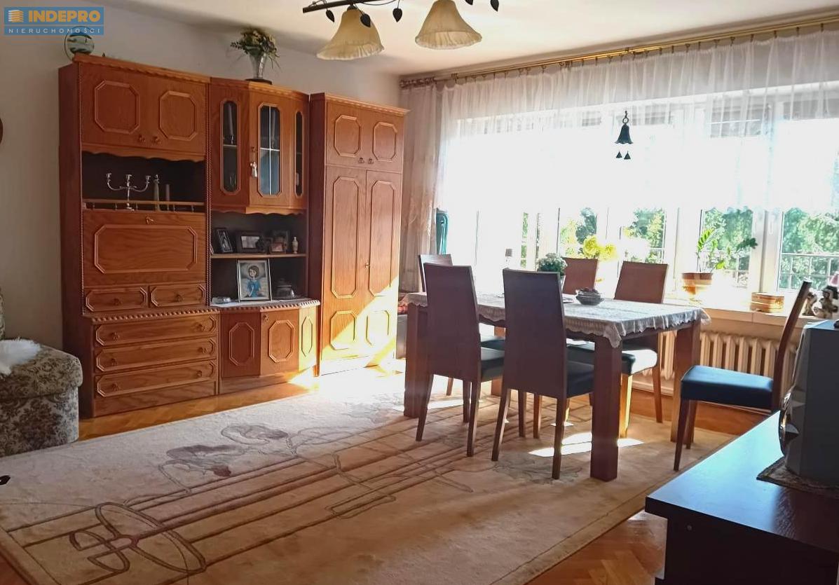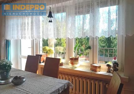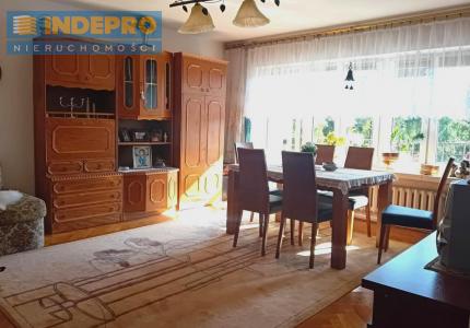Salon jasny i przestronny, z wyjściem na balkon typu loggia, idealny do wypoczynku.