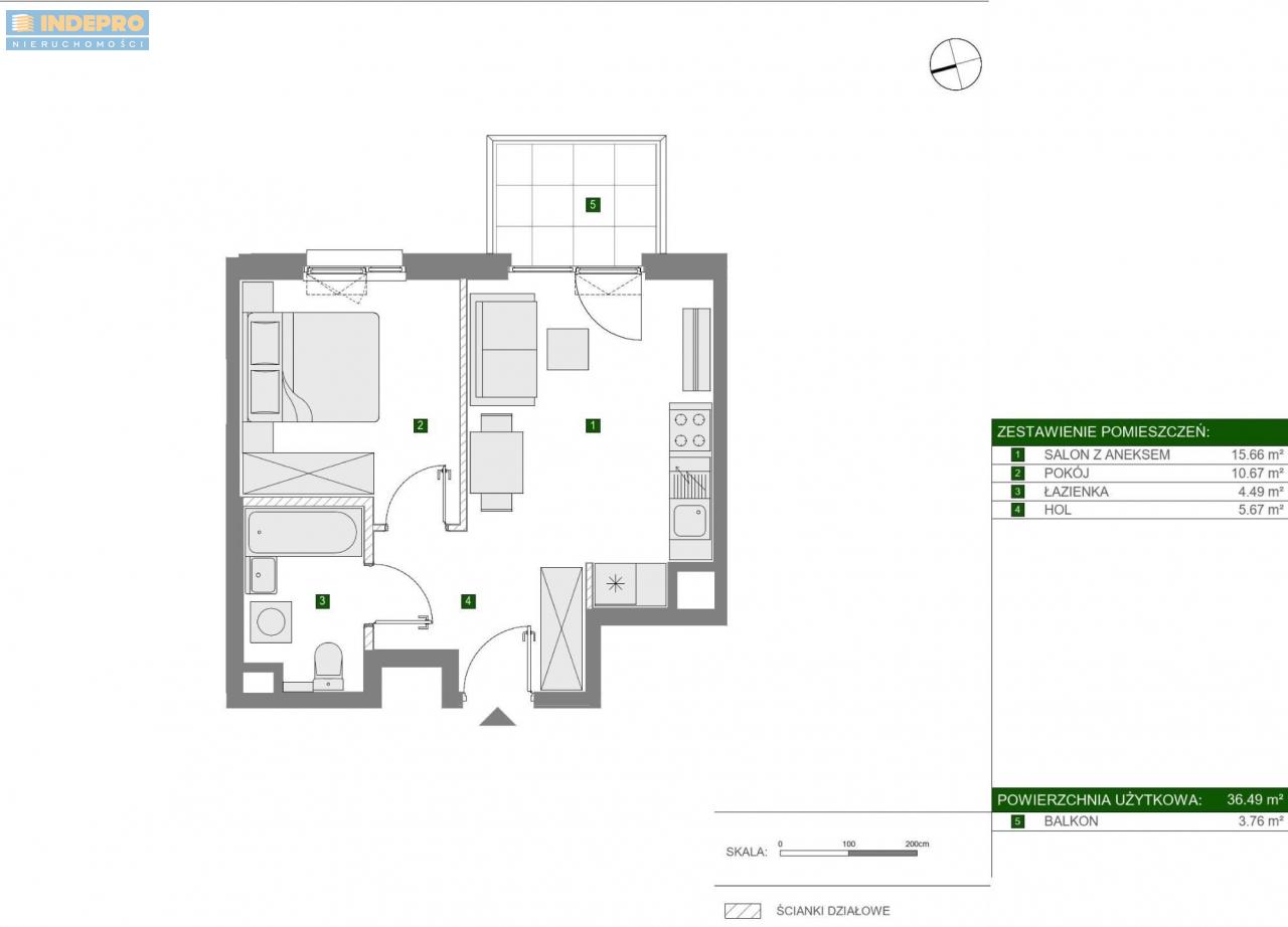 Lokal został zaprojektowany z myślą o maksymalnym wykorzystaniu przestrzeni. Przemyślany układ obejmuje strefę dzienną z aneksem kuchennym oraz oddzielną sypialnię, co zapewnia wygodę codziennego funkcjonowania. Wysokość pomieszczeń 2,7 m oraz duże przeszklenia gwarantują bardzo dobre doświetlenie wnętrza i poczucie przestrzeni. Istnieje możliwość wykończenia mieszkania pod klucz, co pozwala stworzyć gotową do zamieszkania przestrzeń dopasowaną do indywidualnych potrzeb.