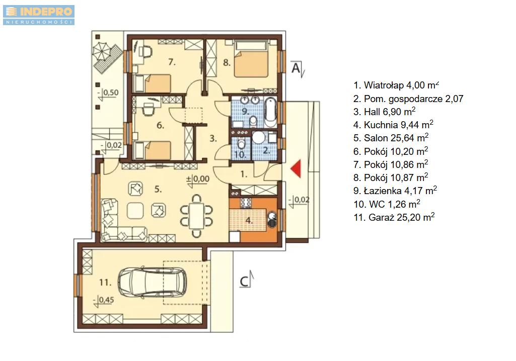 Dom parterowy o powierzchni 110m² z garażem i możliwością adaptacji poddasza - 70m².