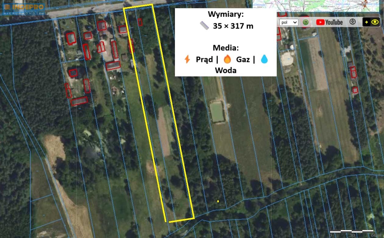 Doskonała inwestycja kapitału Bezpośrednio przy asfaltowej drodze gminnej Szerokość działek ok. 35 m, długość łączna 317 m Media w drodze: prąd, gaz, woda, światłowód Dynamicznie rozwijająca się okolica Rosnące zainteresowanie terenami podmiejskimi