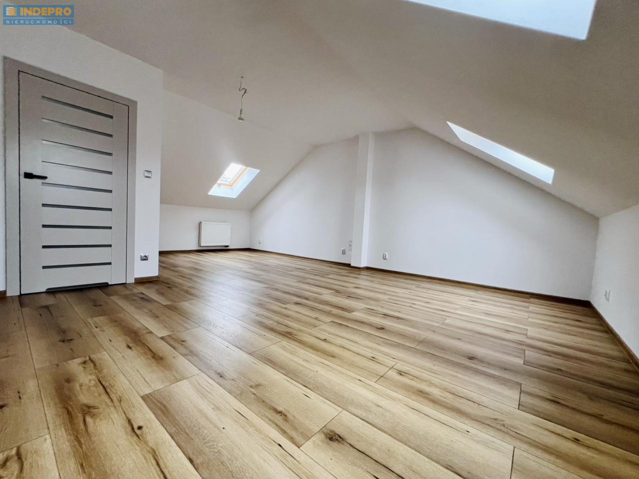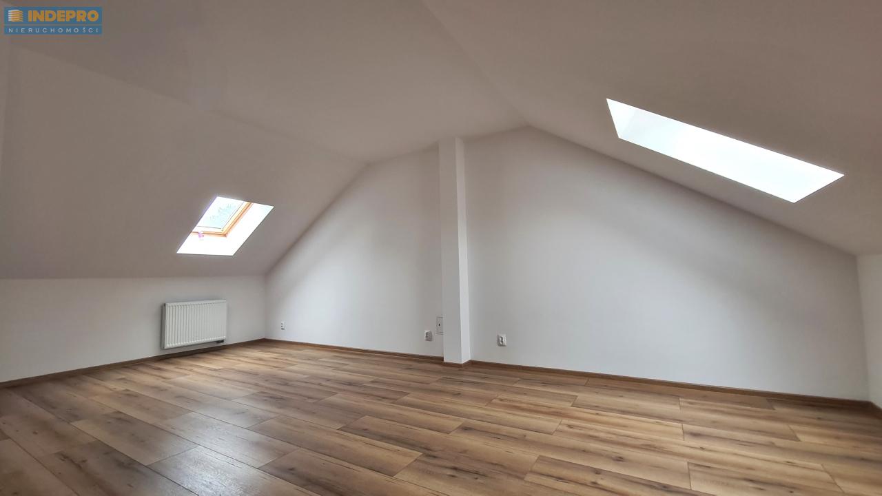 Na poddaszu znajduje się duża, jasna przestrzeń – gotowa do adaptacji na dwa niezależne pokoje oraz łazienkę z pralnią.
