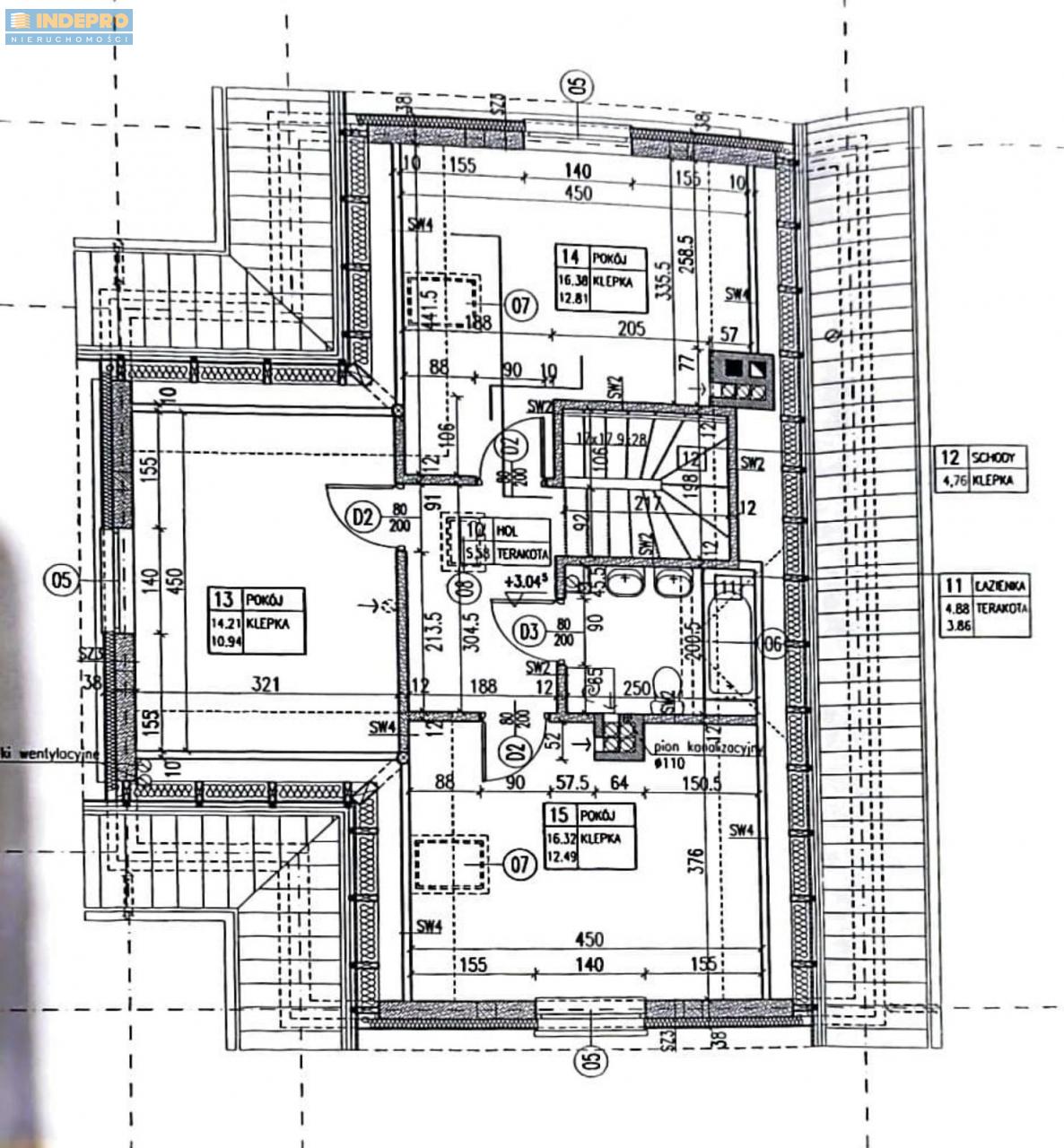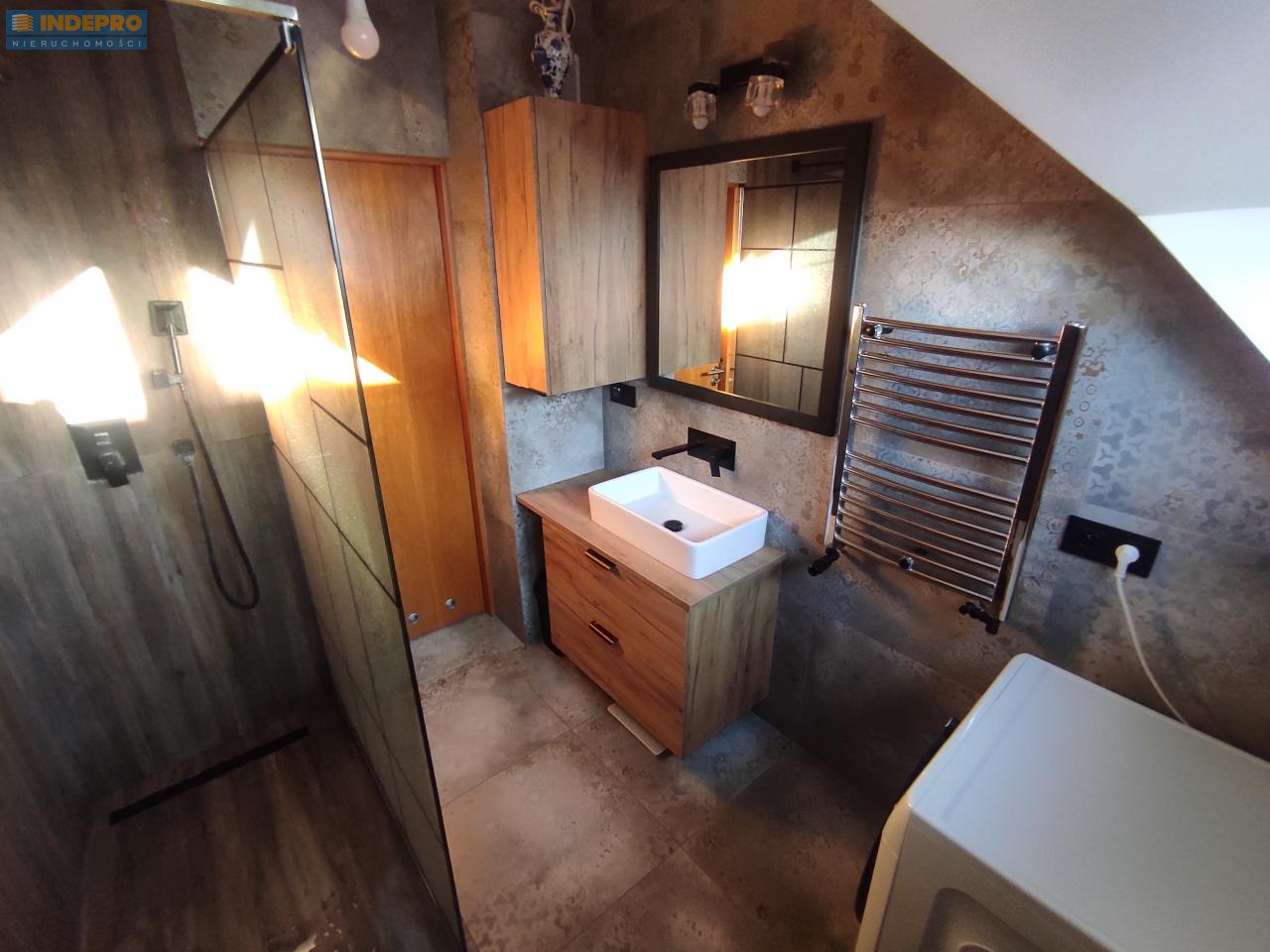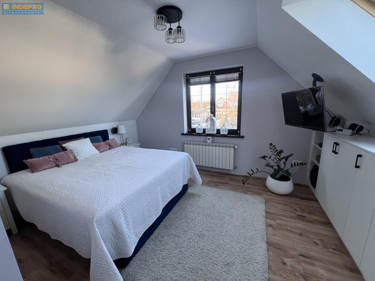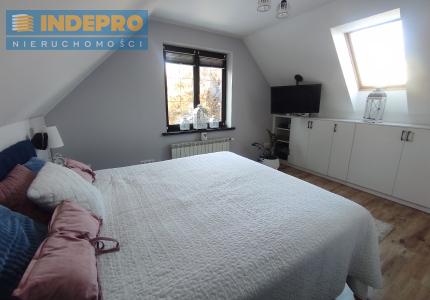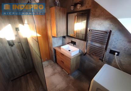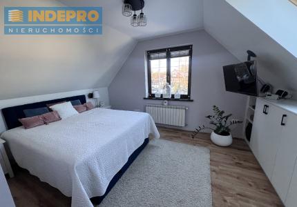Na górze znajdują się trzy bardzo przestronne i ustawne sypialnie, które dają szerokie możliwości aranżacyjne, oraz łazienka z prysznicem, wyposażona w okno umieszczone powyżej 1,90 m, co zapewnia naturalne światło i pełną prywatność.