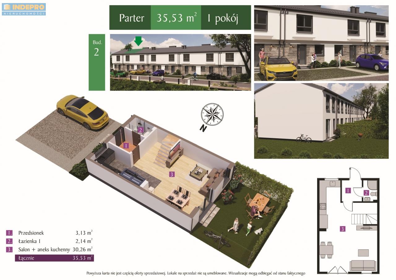 Na około 72 m² zaplanowano funkcjonalną przestrzeń, która z łatwością pomieści potrzeby pary jak i rodziny z dziećmi. Do dyspozycji mieszkańców jest również prywatny ogródek (ok.30 lub 70m²) - idealny na poranną kawę, zabawę z dziećmi czy wieczorne grillowanie. Dwa miejsca postojowe zapewniają komfort użytkowania.